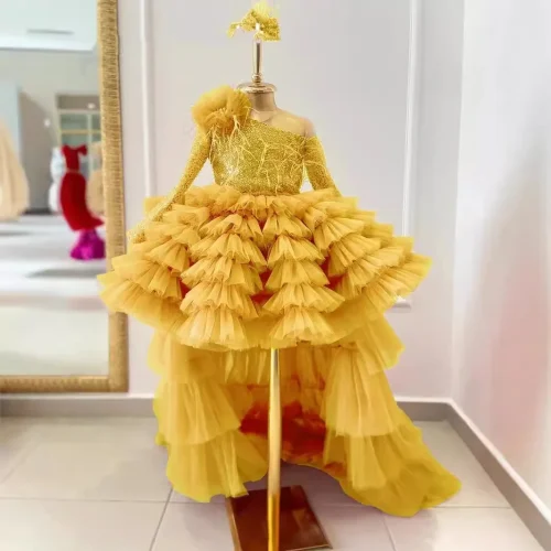 Ma Girl Long Sequin Tutu Party Wedding Cake Dress Girl Bridal Piano Birthday Princess Evening Dress