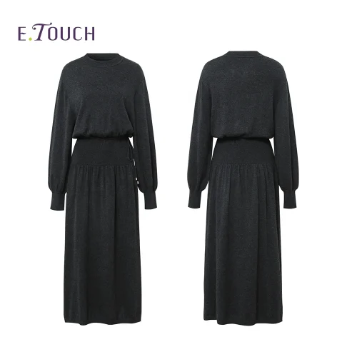 New Arrivals Women Clothing Black Soild Color Long Sleeve Winter Casual Dresses Lady Women Round Neck Elegant Long Dresses