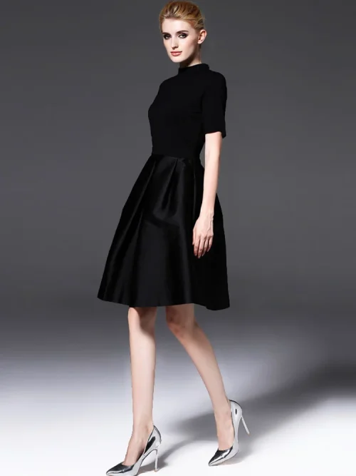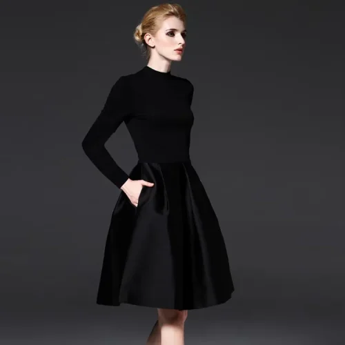 New Fashion Vintage Mini Dress for Women Solid Black Simple Knitted A-Line Autumn Natural Anti-Static Service Available