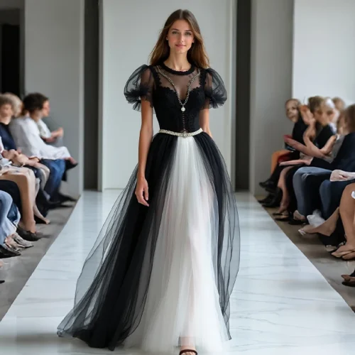 ZYHT 73054 New Arrival Lace Tulle Puff Short Sleeve Elegant Wedding Formal Woman Dresses White Black Evening Dress Ball Gown