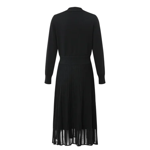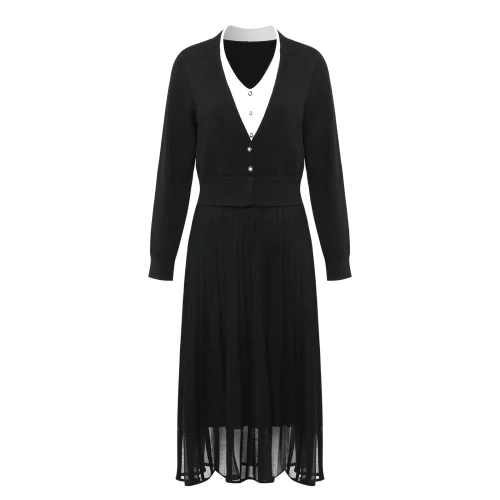 Autumn Fashion 2024 Comfortable Women Black Knitwear V-neck Pullover Loose Lady Chiffon Maxi Knitting Sweater Dress