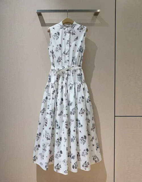 100%Cotton Long Dress 2025 Summer Designer Fashion Vestidos Women Sweet Floral Prints Sleeveless Long White Maxi Dress Party