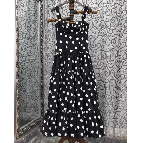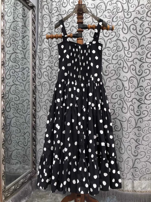 100%Cotton Long Dress 2025 Summer Evening Party Lady Spaghetti Strap White Polk Dot Prints Sexy Black Long Maxi Dress Club Wear