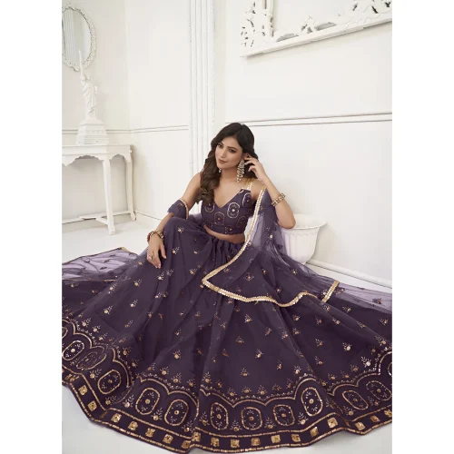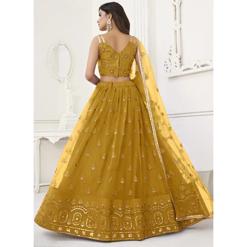 Butterfly Net Lehenga Choli with Mustard Embroidery Evening Dresses for Party Wear