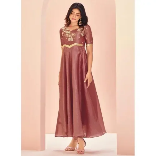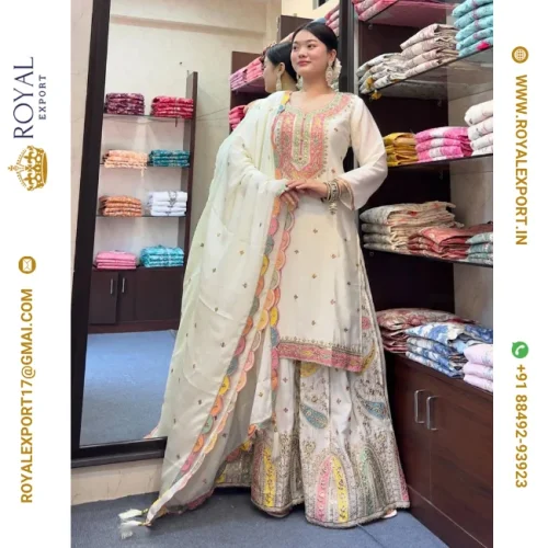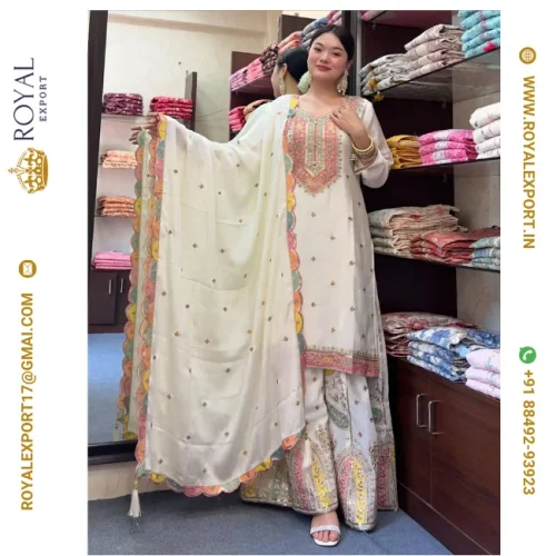 Designer New Heavy Chinnon Silk With Thread Embroidered Work Ready to Wear Suit Collection