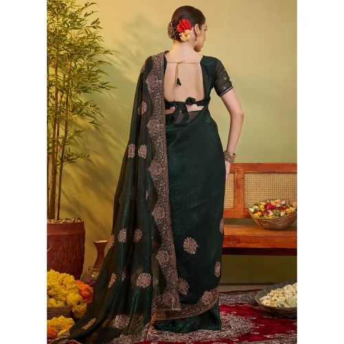 Crunchy Chiffon Saree with Peach Embroidery Party Wear Evening Dress