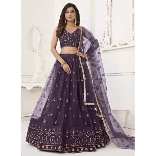 Butterfly Net Lehenga Choli Embroidered Wine Pearl High-Collar Short-Sleeve Straight Party Wear Evening Dress for Ladies 4XL