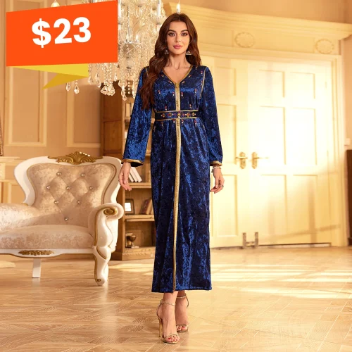 Cross-border Sourcing Fashion Scrub Fabric Solid Color Diamond Collar Tunic Long Sleeve Dress With Belt