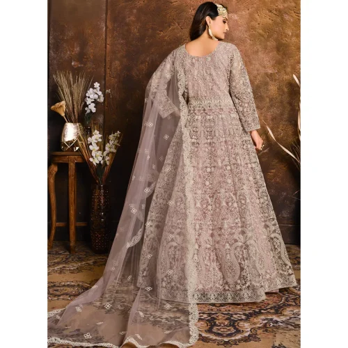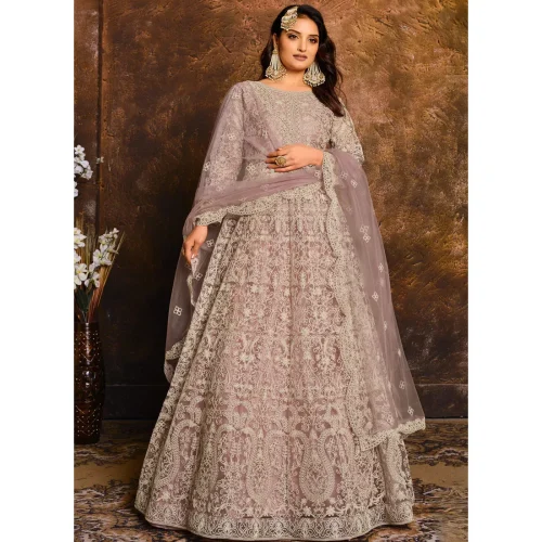 Lavender Embroidery Work Evening Dress Wedding Wear Net Anarkali Suit