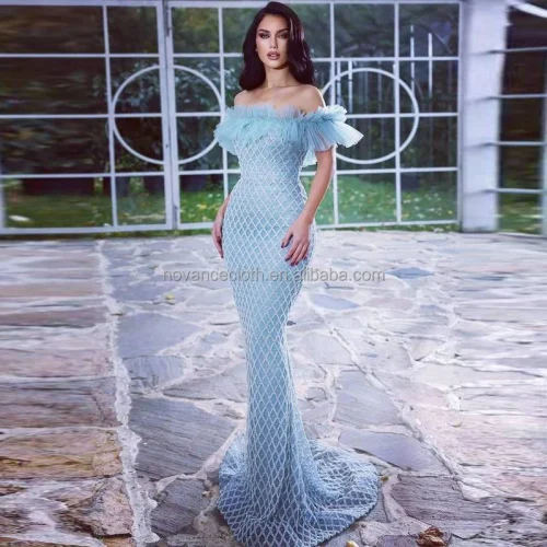 Nocance New Arrivals Clothes for Ladies Blue Strapless Elegant Evening Dress Sequin Sexy Long Dress Vestidos De Novia Boda Civil
