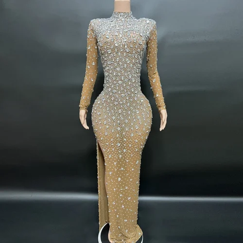 Nocance 2023 High End Prom Dresses High Quality Long Sleeve Rhinestone Dress Split Club Dress Elegant Gown Vestidos De Novia