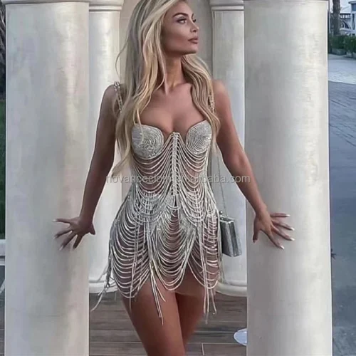 Nocance Novance Stock X Sparkly Crystals Mesh Fringe Chica Vestido De Noche Dress Women Ladies Dresses Valentine’S Day Outfits