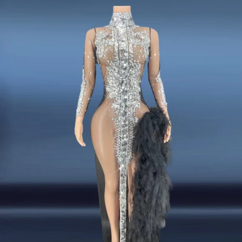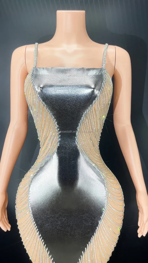 NOVANCEY 1739-A Trending Products 2022 New Arrivals Stretchy Diamond Tassel Silver Women Party Dress Club Dresses for Nightclub