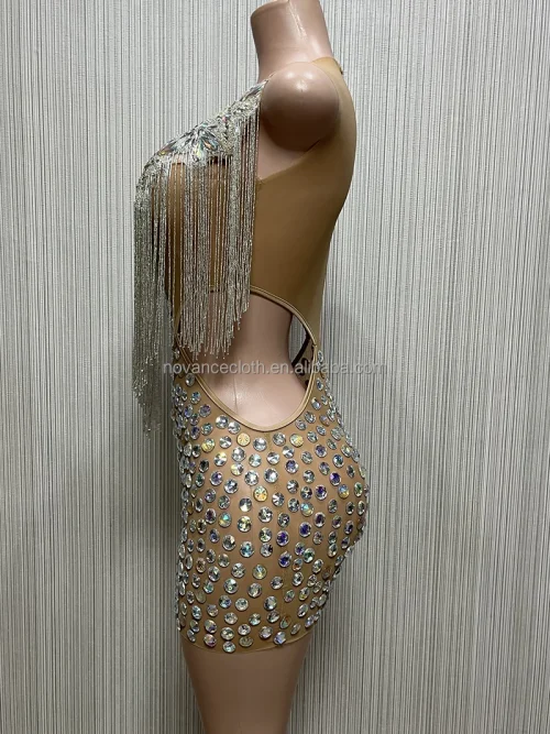 Novance Y2504 High Fashion Blingbling Diamond Tassel Special Needs Clothing Nightclub Style Hollow Out Dress Vestido Pasarela