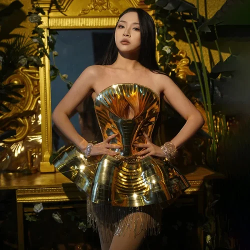 NOVANCE Y2864 Style Elegant Cocktail Dresses 2023 Shiny Tessles Golden Dress for Ladies Short Dresses Women Party Evening