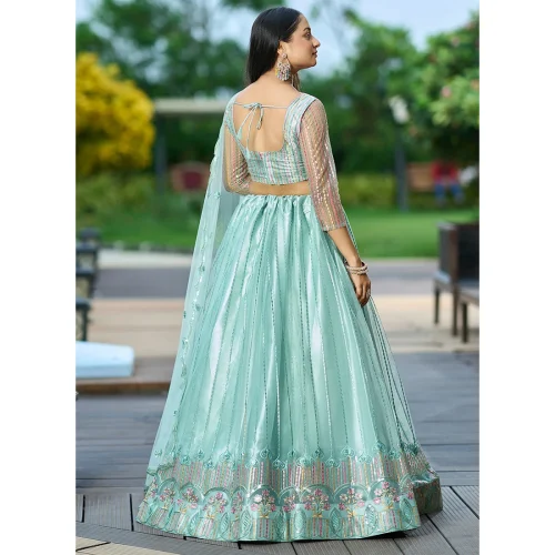 Sky Blue Embroidery Work Evening Dress Party Wear Net Lehenga Choli