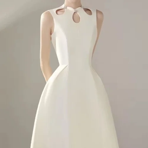 Spring Summer 2024 New Arrivals High End Light Luxury Style Dress Women Hollow Out Diamond Sleeveless Temperament Dress