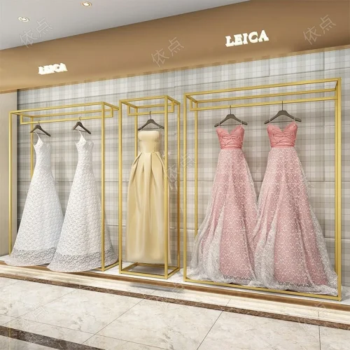 Shop Decorations Boutique Bridal Store High End Stainless Steel Gold Wedding Dress Clothing Rack Display Showcase