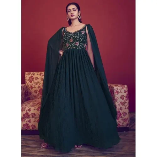 Teal Blue Thread Work Georgette Dress with Dupatta