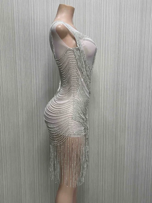 Vetements Femme 2022 Crystal Evening Dress White Long Fringe Dress Cargo Mini Skirt Women Sexy Robe De Soiree Mariage Fete