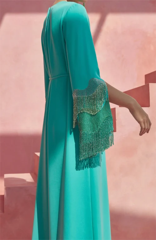 U.Chic 2023 Luxury Modest Solid Hand-Work Women Dress Beading Tassel Design Maxi Lady Dress With Vent Cuff