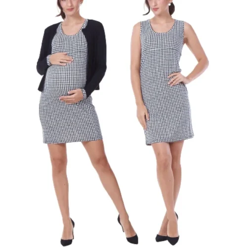 Two-Piece Casual Nursing Dress Good Quality Woven Everyday Wear Public Work Accessible Via Hidden Zip Designed Pregnant Women