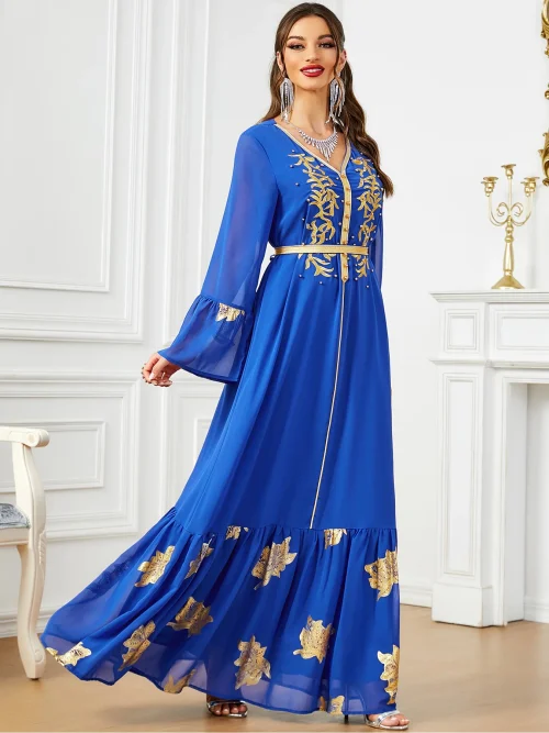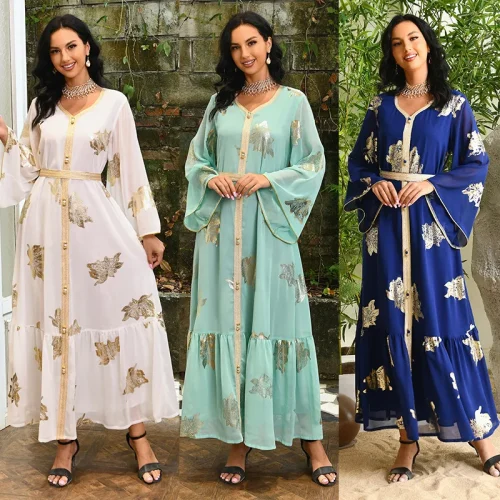 540 Eid Floral New Designs Chiffon Long Sleeve Ladies Kaftan Arab Muslim Woman Maxi Abaya Dresses