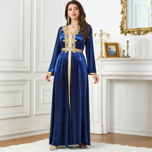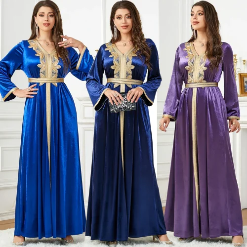 459 Velvet Abaya Muslim Clothing Turkey Solid Islamic Long Wearing Belt Closed Dress Women Dubai Abaya
