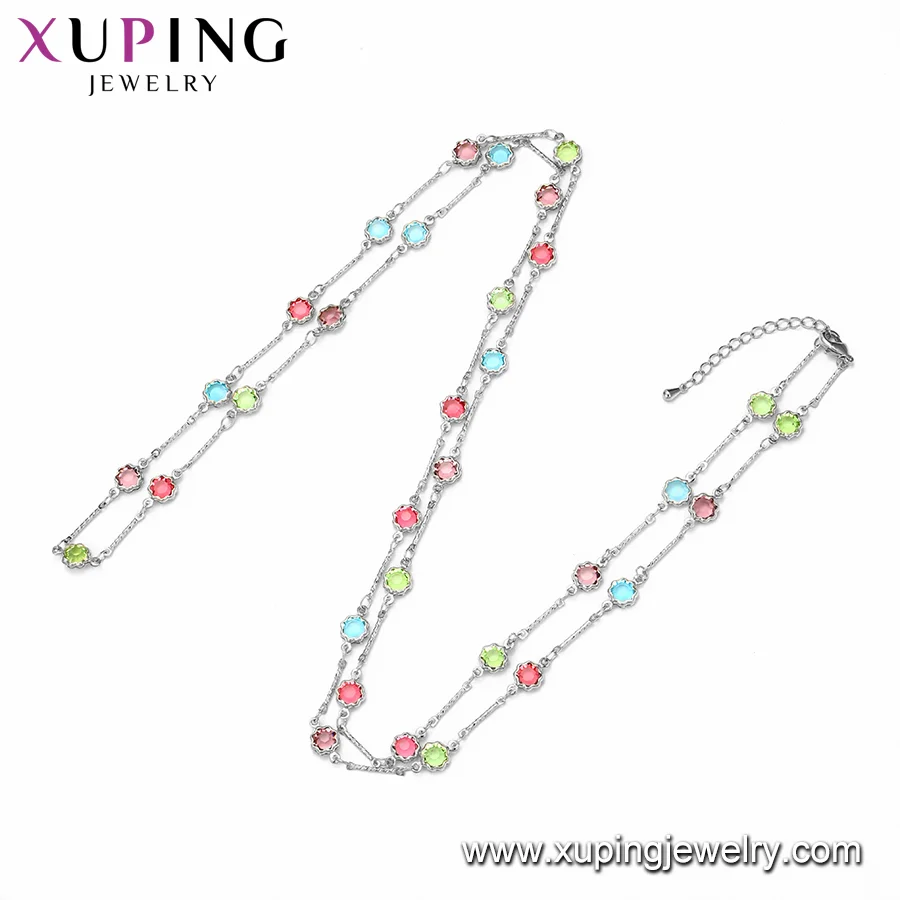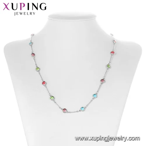 Product Name: 01112 Xuping Fashion Jewelry Rhodium Color Italy Style Sweater with CZ Chain Necklace for Women