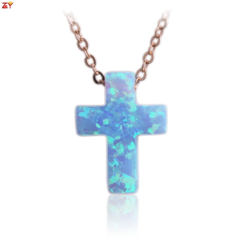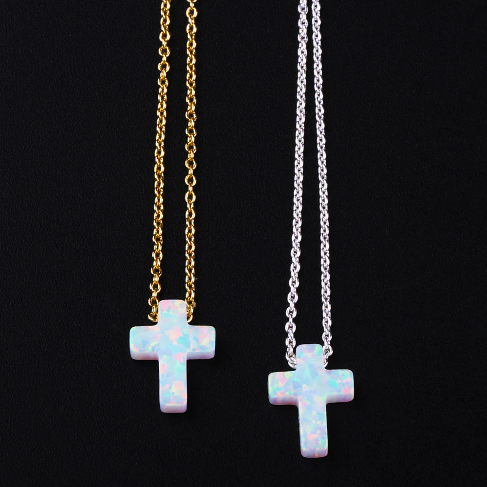 1 Piece Popular Cross Necklace 925 Silver Unisex Chain Plated Gold Synthetic Opal Jewelry Cross Blue White Charms