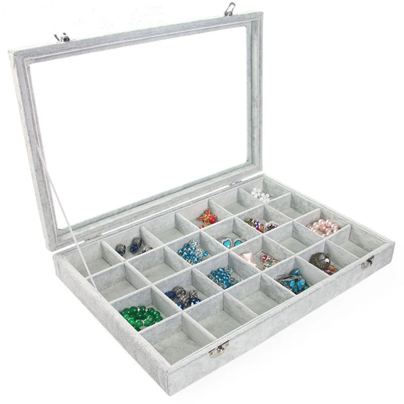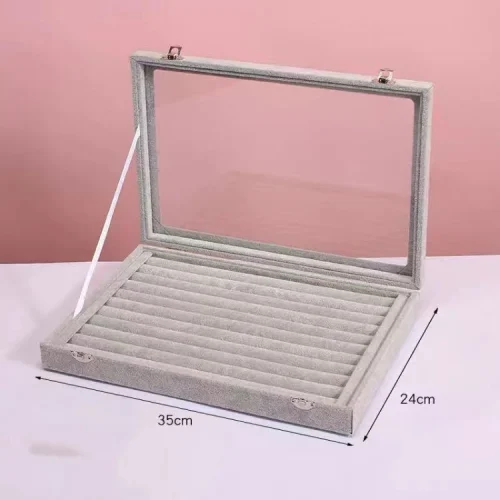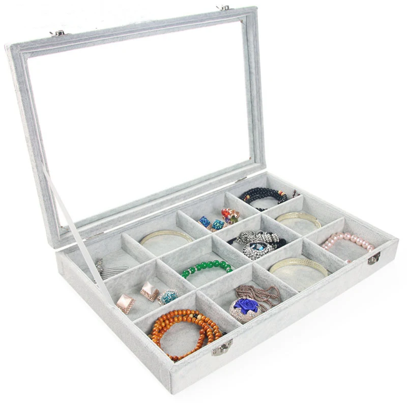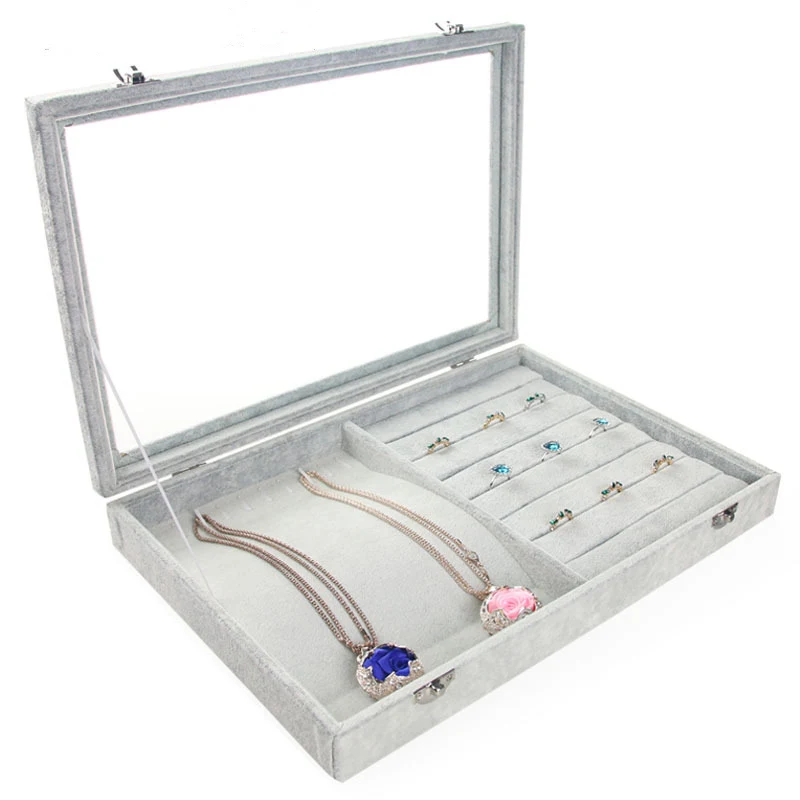 Product Name: 10 Designs Gray Velvet Lining Unique Jewelry Rings Earrings Necklace Pendant Bracelet Crossed Box With Glass Lid
