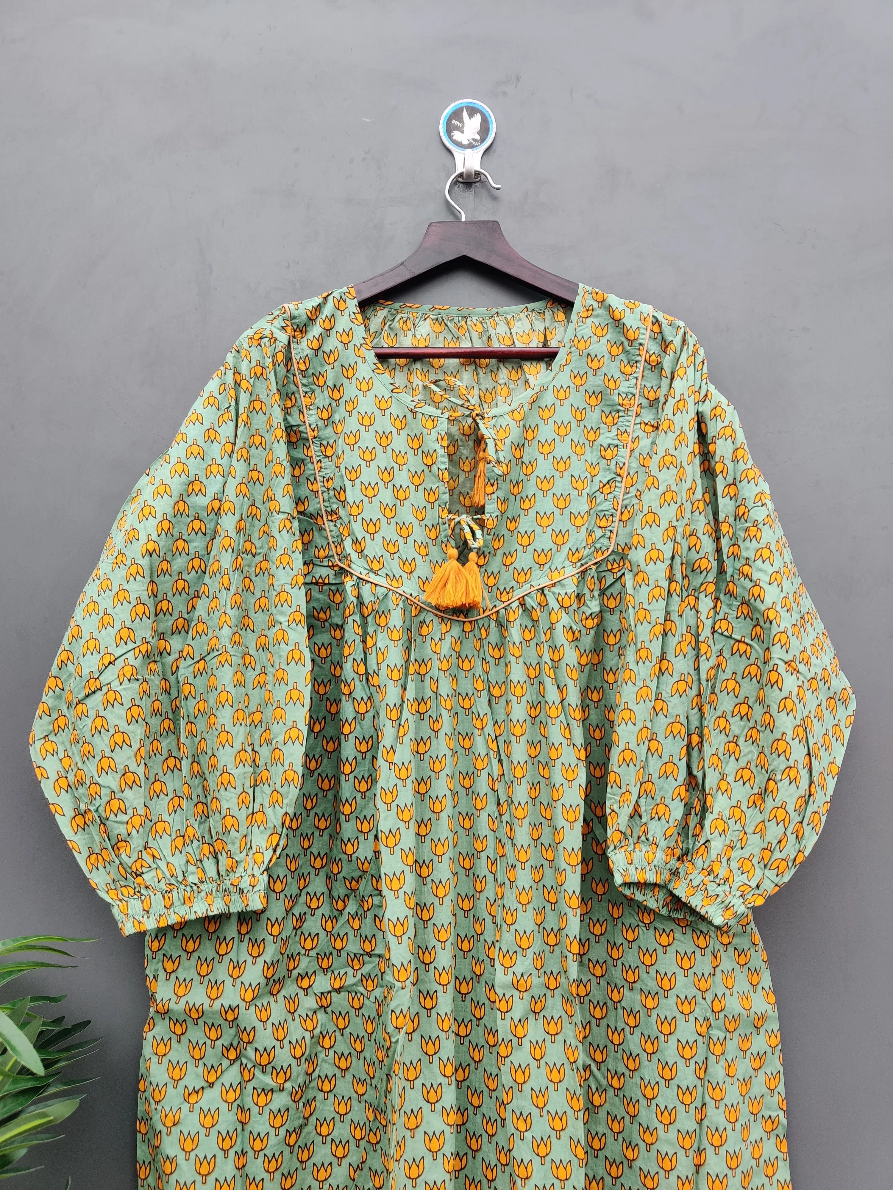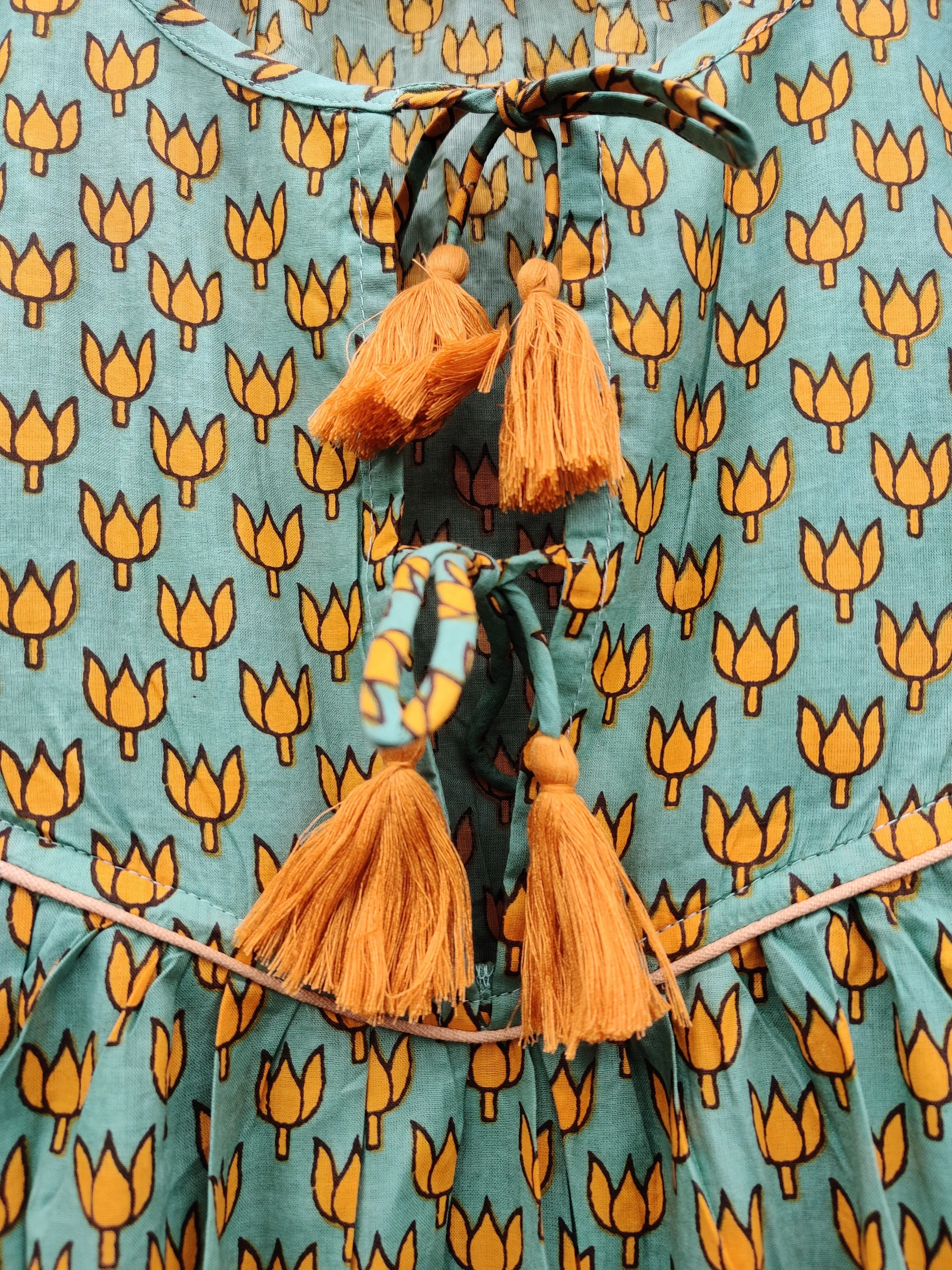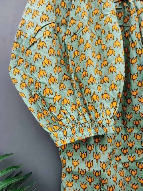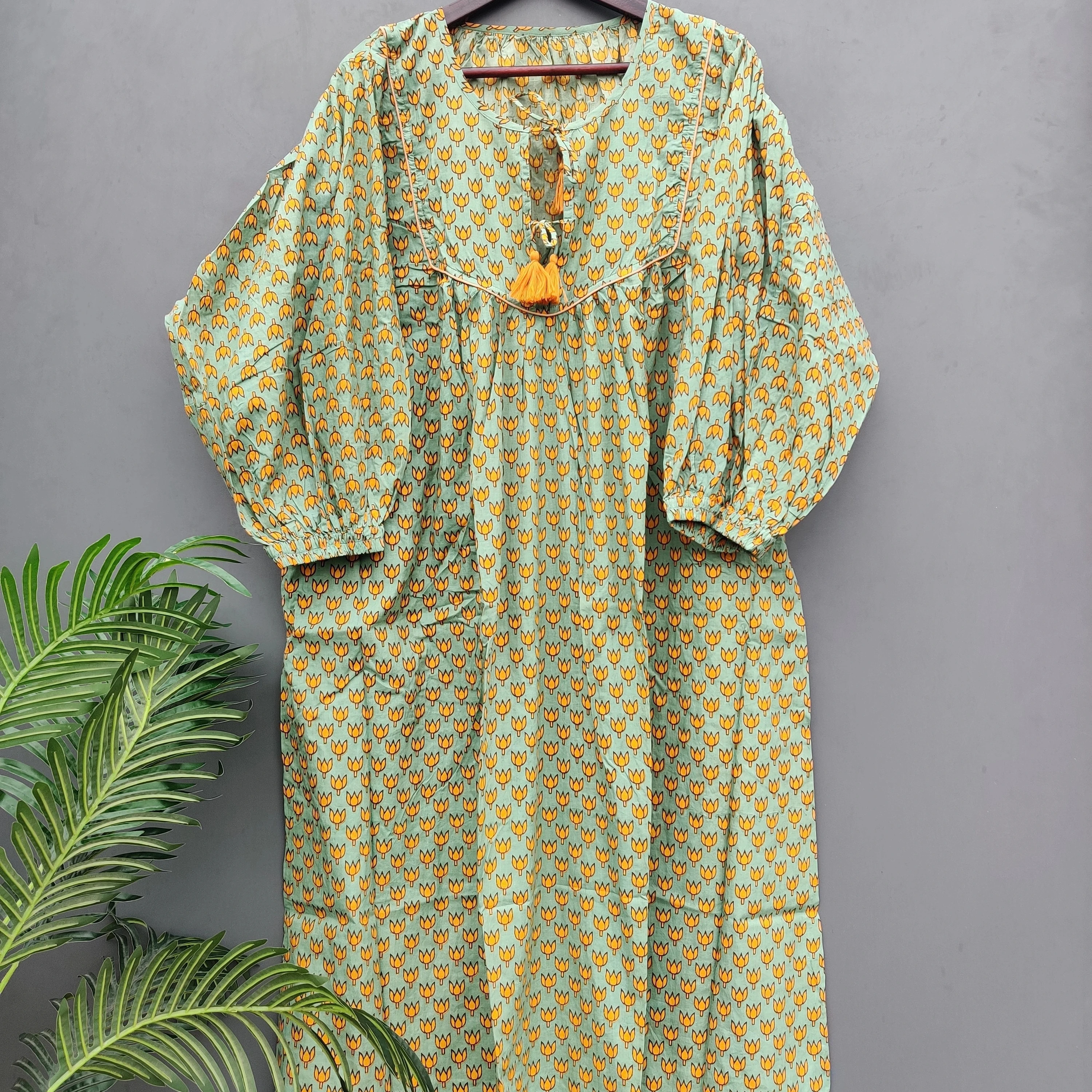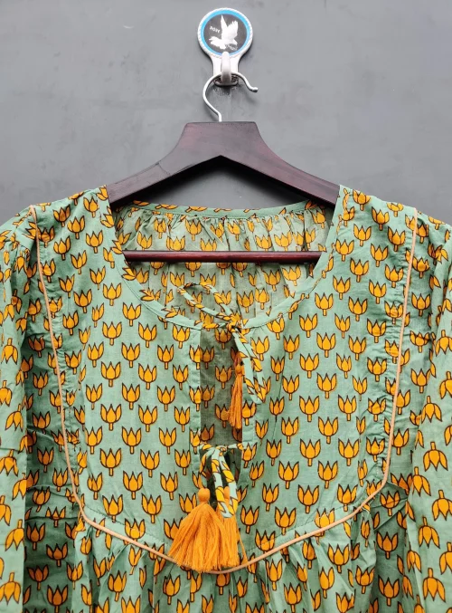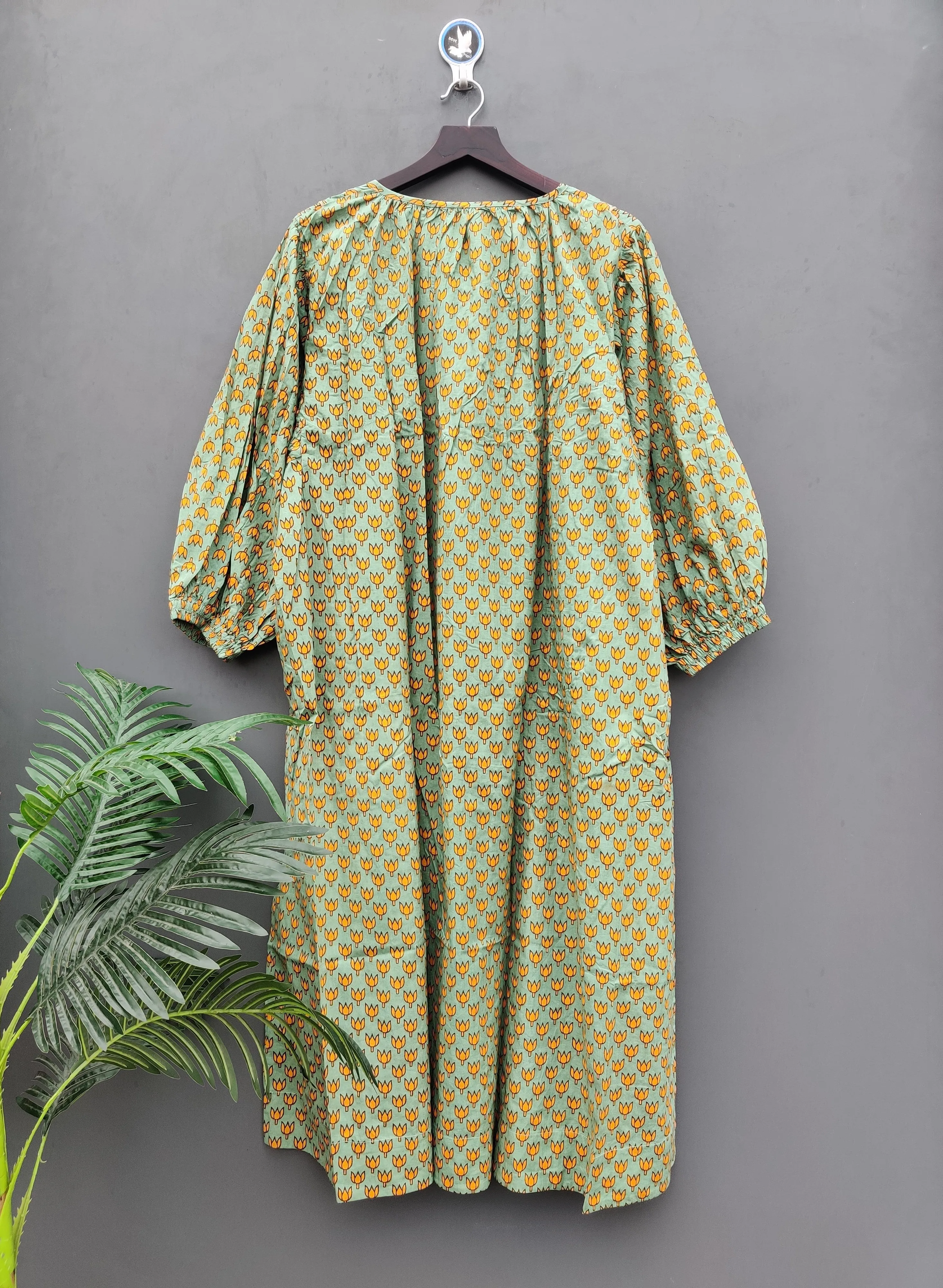 Product Name: 100% Hand Block Printed Women’s Beautiful Floral Cotton Beach Dress Green Free Size Washable Natural Waistline Lightweight