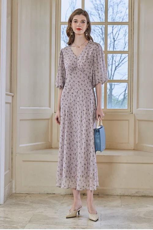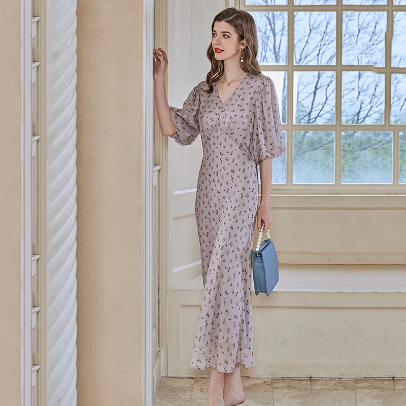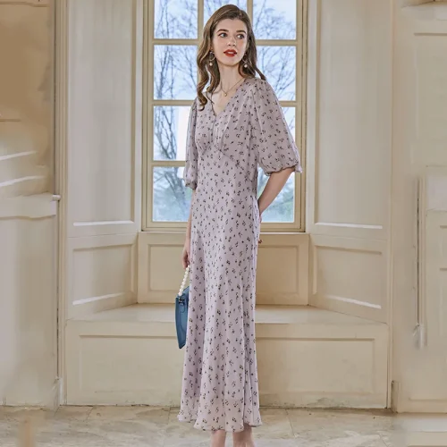 Product Name: 100% Pure Mulberry Silk Long Dress Silk Dresses Women Ladies Elegant