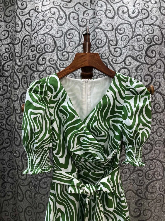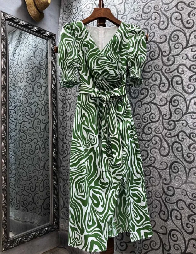 Product Name: 100%Cotton Dress New 2021 Spring Summer Fashion Clothing Women Sexy V-Neck Short Sleeve Mid-Calf Length Casual Green Dress XL