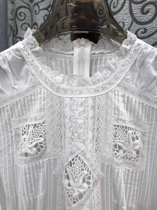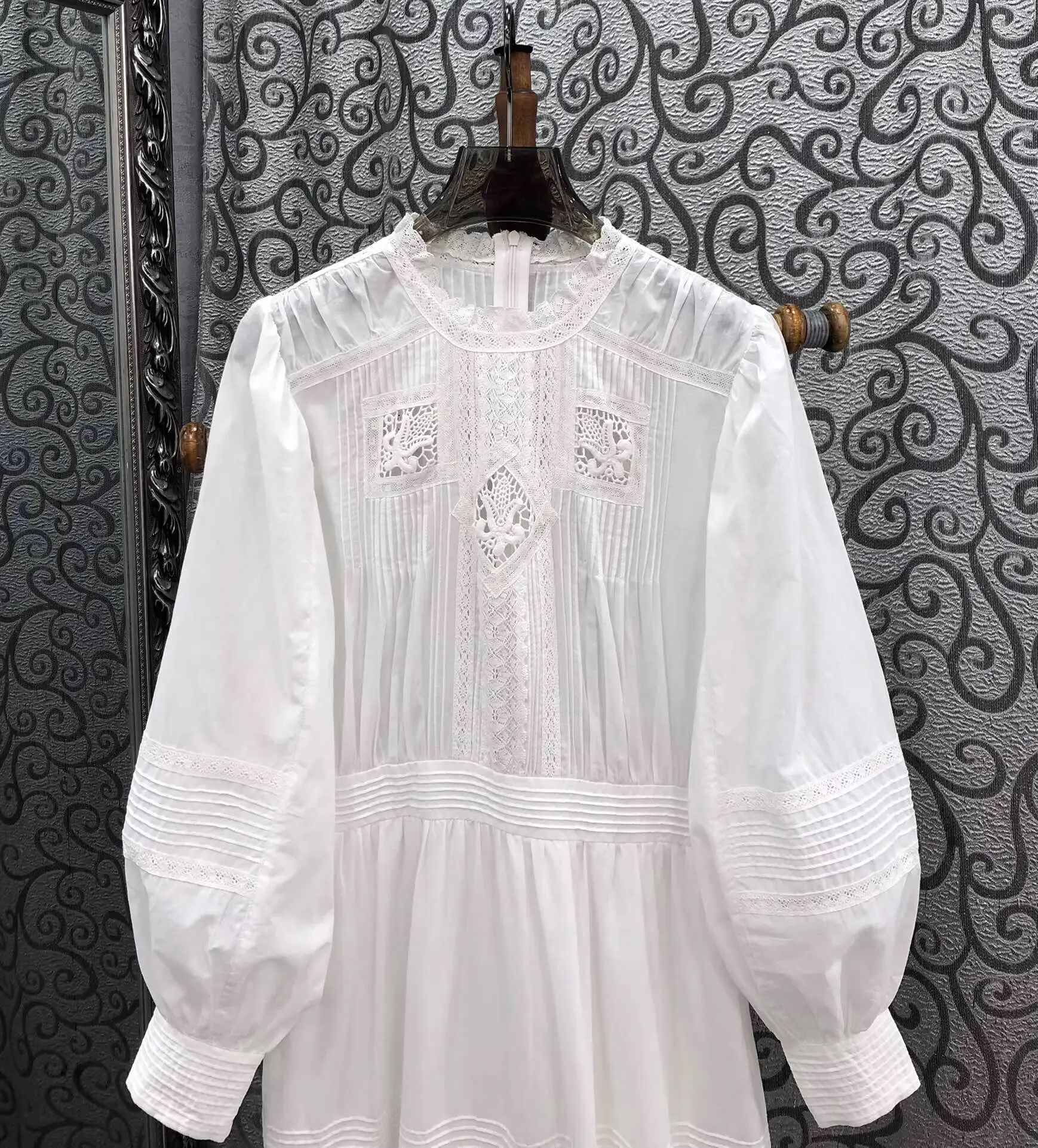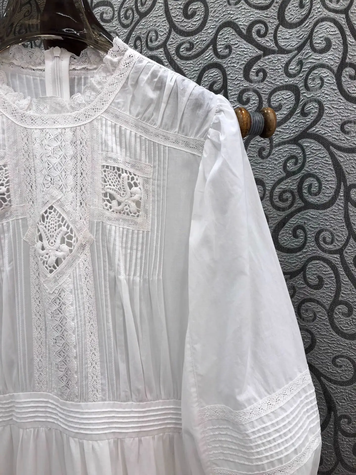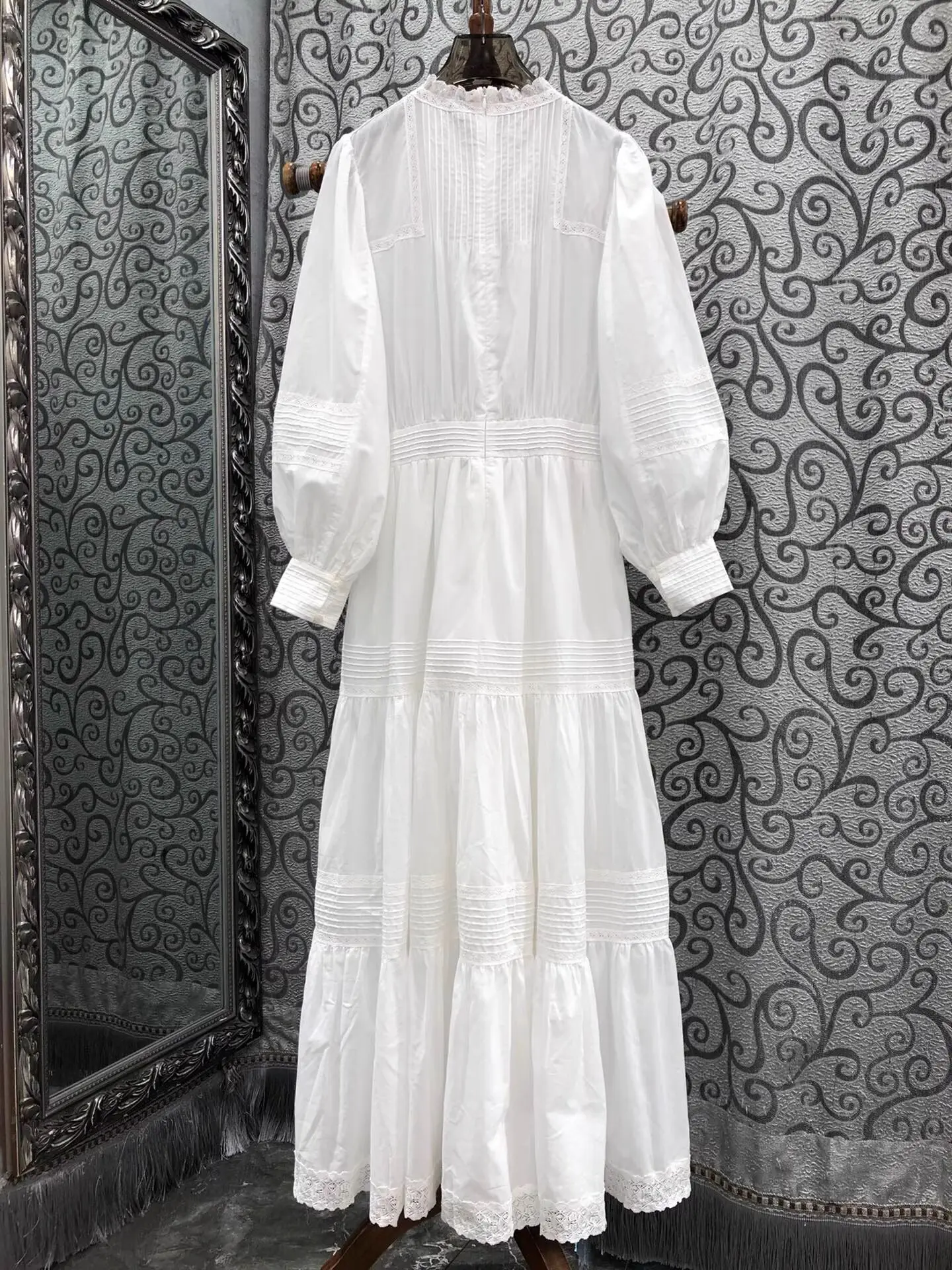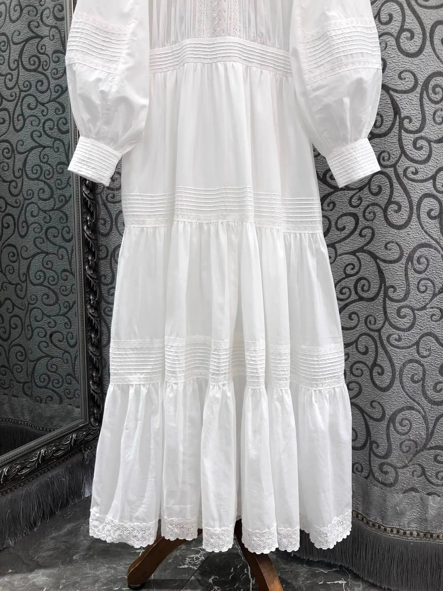 Product Name: 100%Cotton Long Dress 2025 Spring Designer Women Crochet Lace Embroidery Patchwork Long Sleeve Luxurious Lady White Maxi Dress