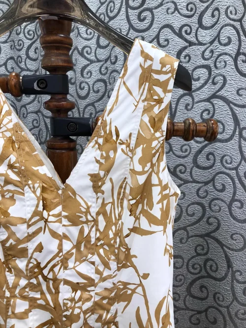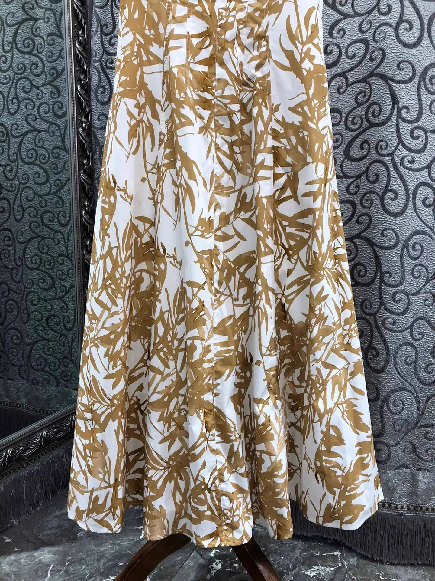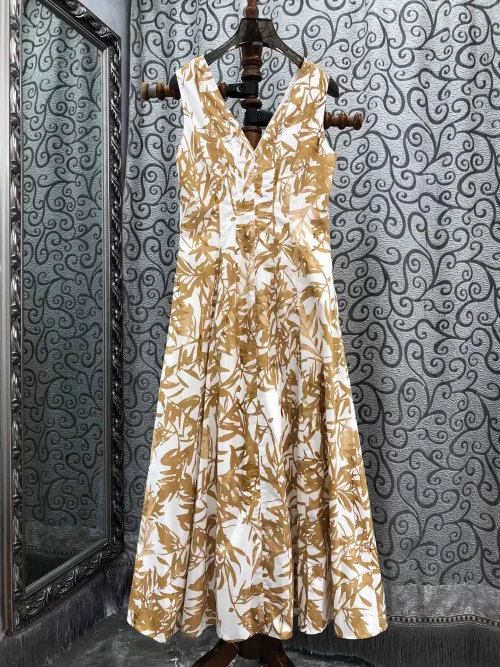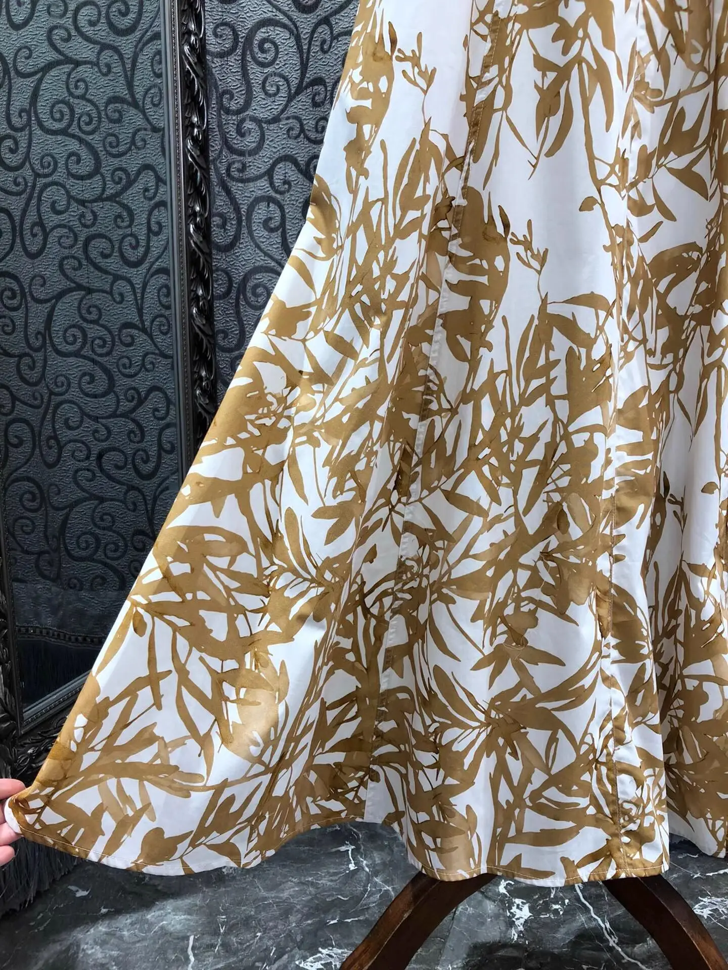Product Name: 100%Cotton Long Dress 2025 Summer Style Women Sexy V-Neck Yellow Leaves Prints Sexy Sleeveless Casual Party Long Maxi Dresses