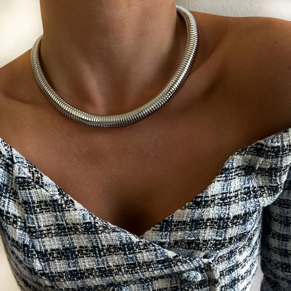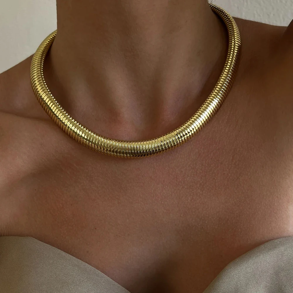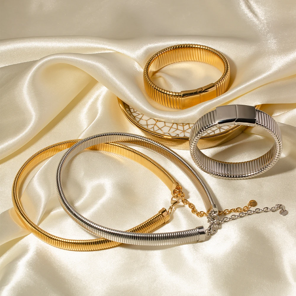 Product Name: 10mm 16k Gold Plated Stainless Steel Minimalist Chunky Belt Snake Chain Bracelets Choker Necklaces Sets