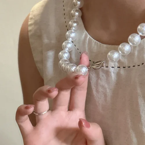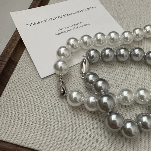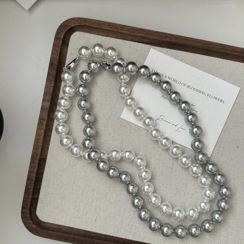 10MM 45CM 925 Sterling Silver Big Quality White Gray Pearl Strand Beads Necklace High Quality Gifts