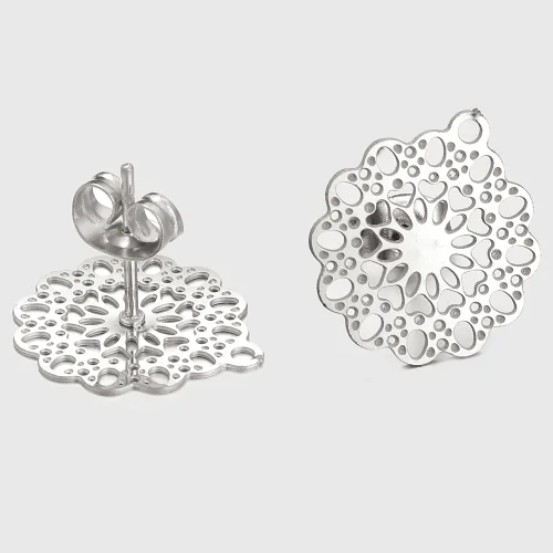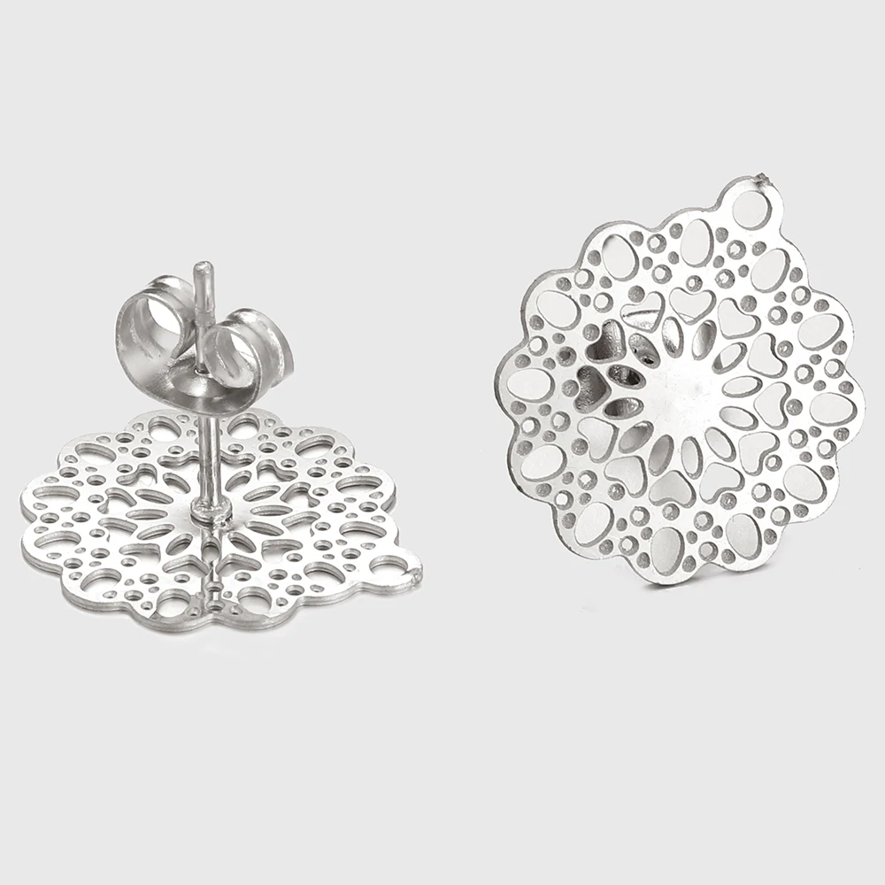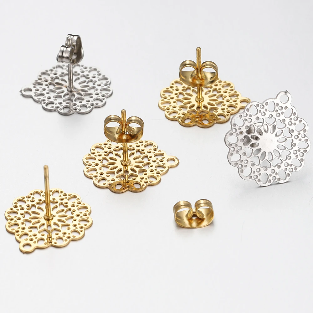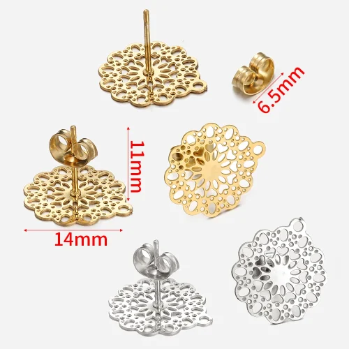 10Pcs Fashion Gold Plated Stainless Steel Hollow Out Flower Type Stud Earrings for DIY Jewelry Making Earrings Accessories