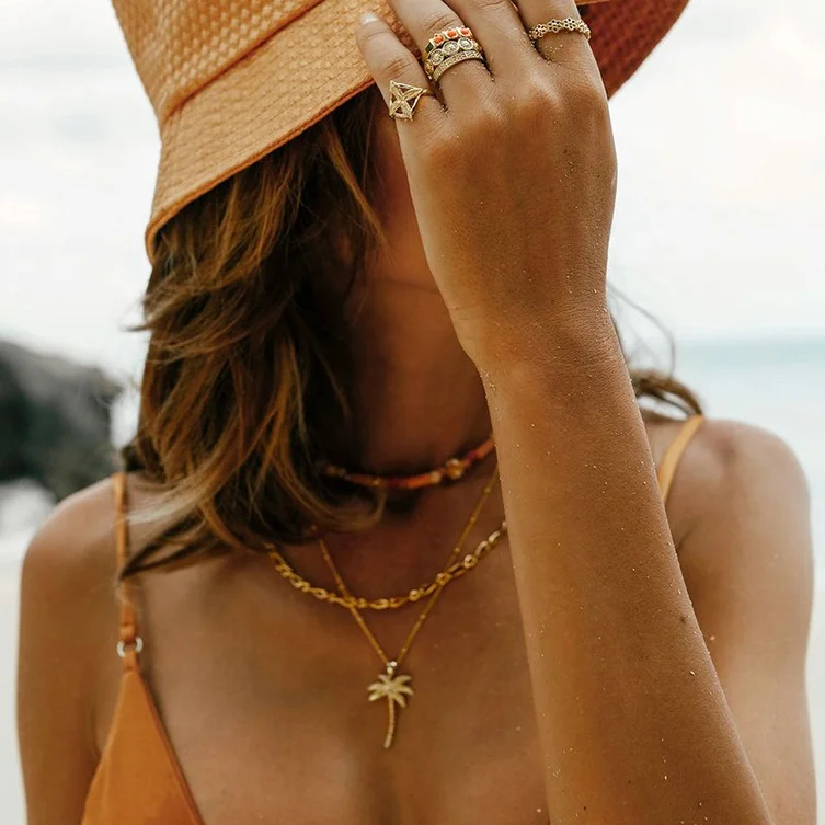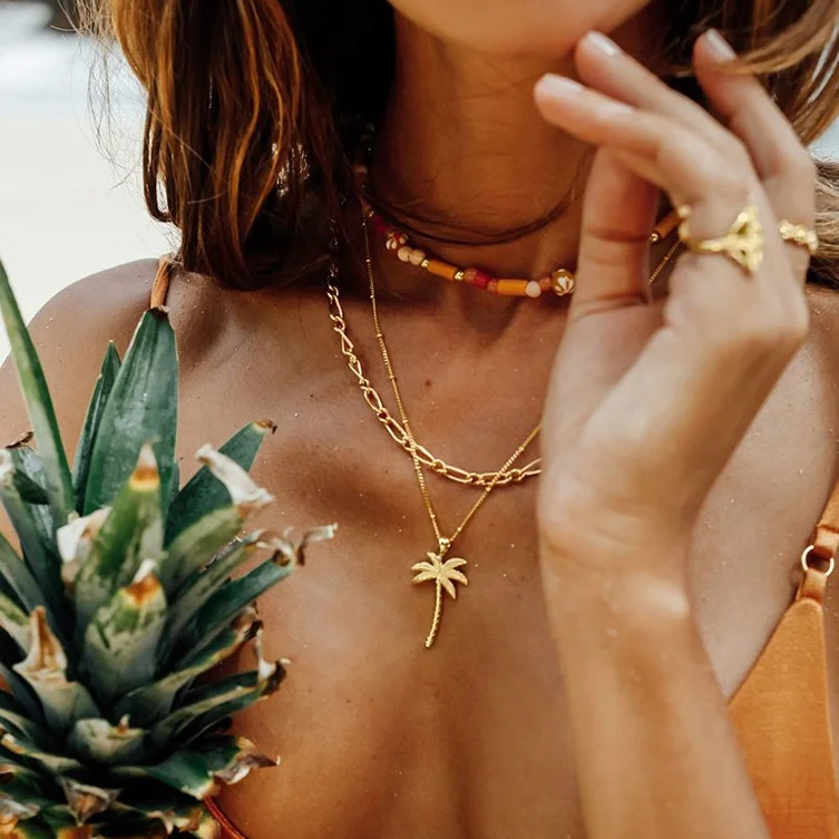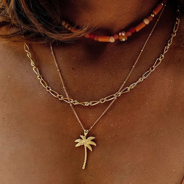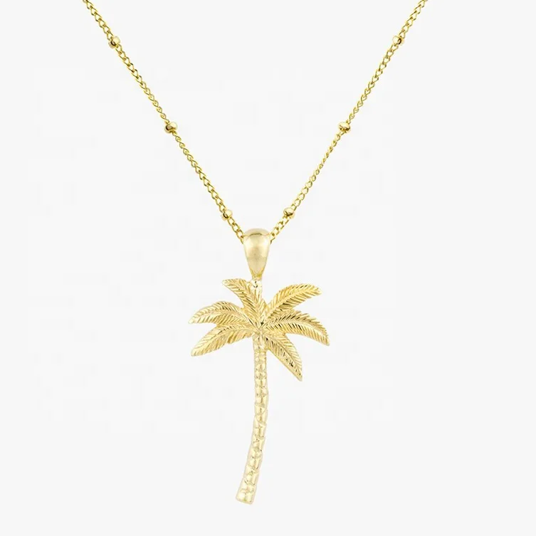 14/18K Gold Plated/Vermeil 925 Sterling Silver Hawaiin Summer Beach Ocean Women Jewelry Palm Tree Necklace