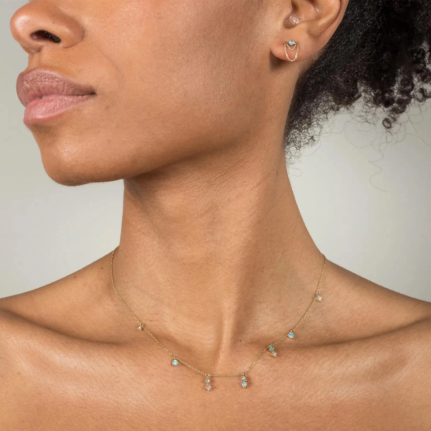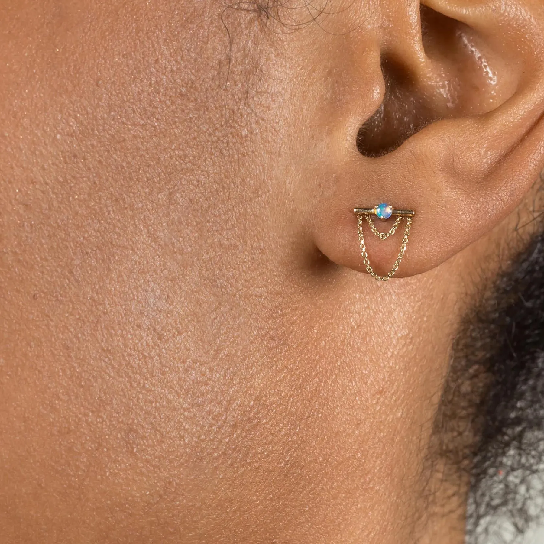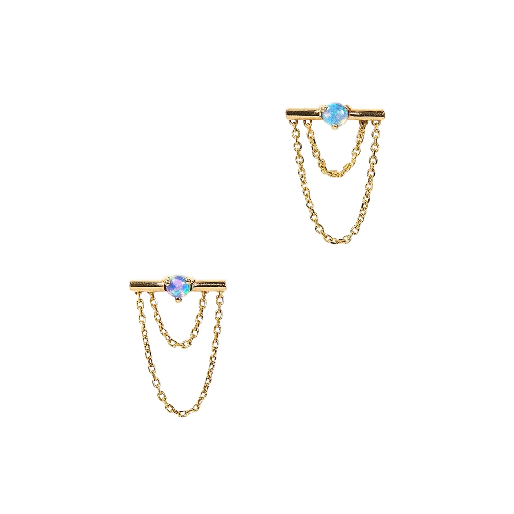 14k Gold Opal bar and Chain Stud Earrings Designer Fashion Stud Earring Simple Sterling Silver Earrings Jewelry High Quality