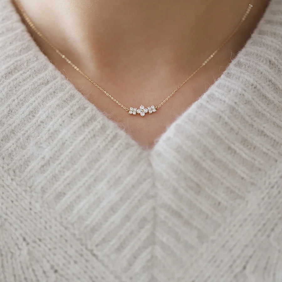 14K Gold Plated S925 Silver Mini Flower Style Pendant Necklace Three Princess Cut Small Korean Japanese Style Pure Silver