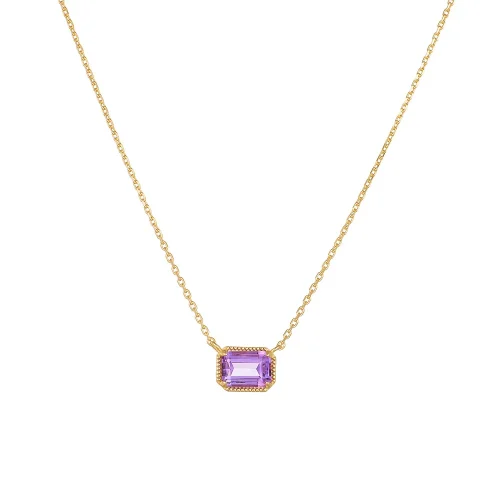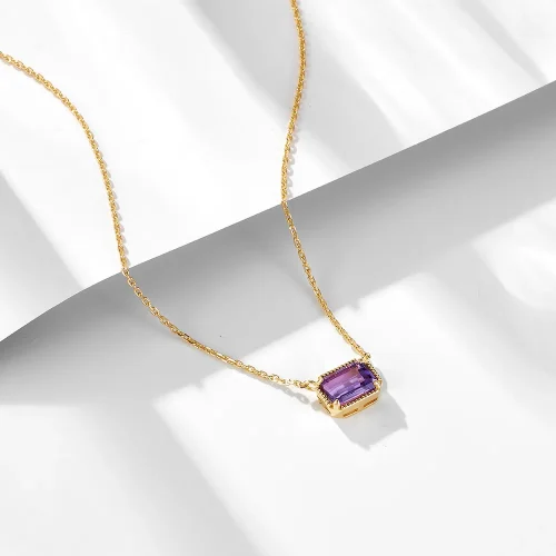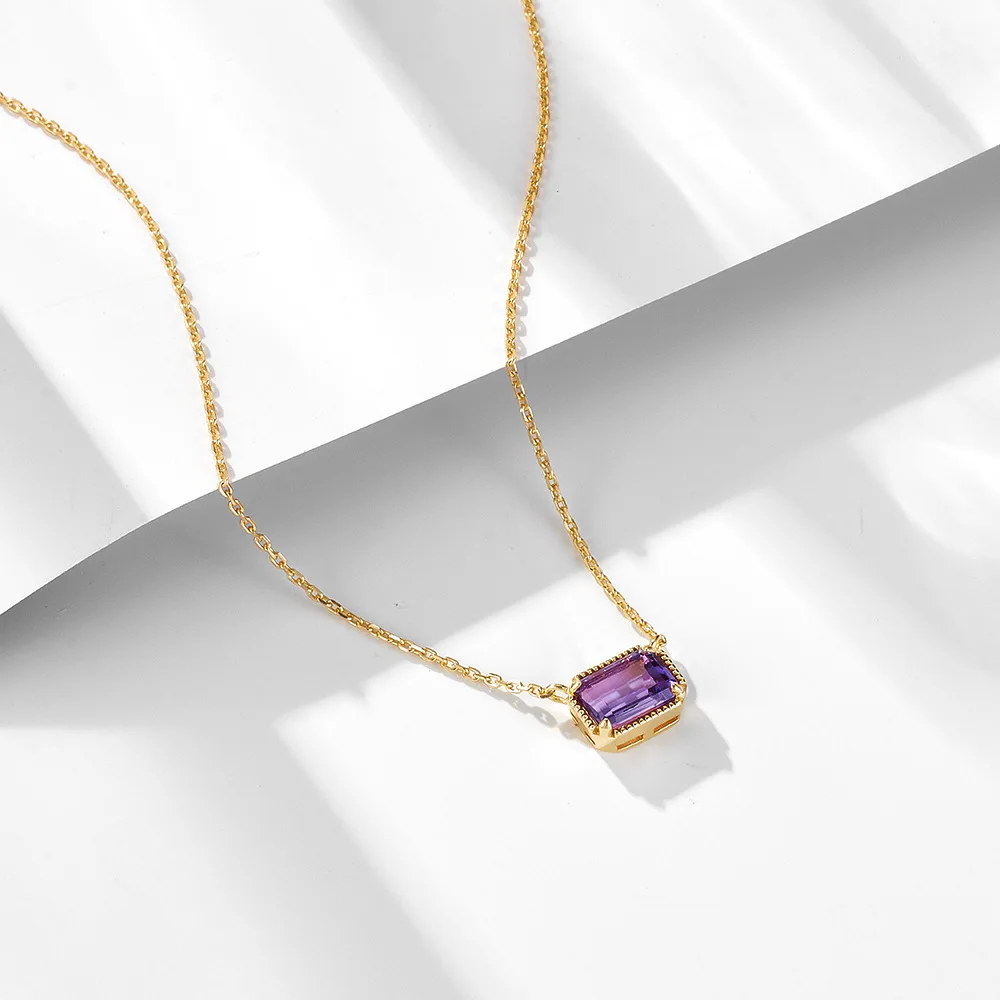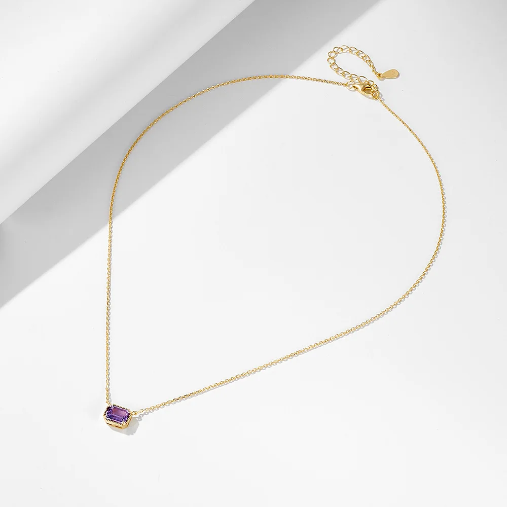 Product Name: 14K Gold Plated Tennis Chain Necklace Dainty Amethyst Gemstone with S925 Silver Fashionable Pendant Necklace Charm Fine Jewelry