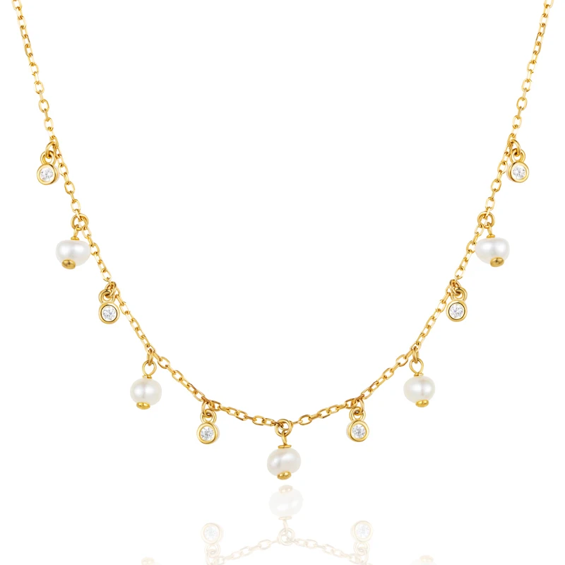 Product Name: 14K Gold Plated Women Jewelry Zircon Stone 925 Sterling Silver Natural Freshwater Pearl Charm Necklaces