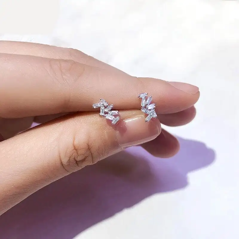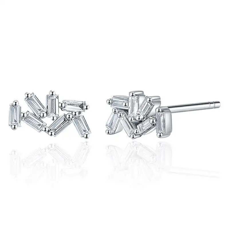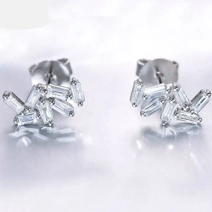 Product Name: 14K White Gold Baguette-Cut Natural Diamond Stud Earrings Fashion Jewelry