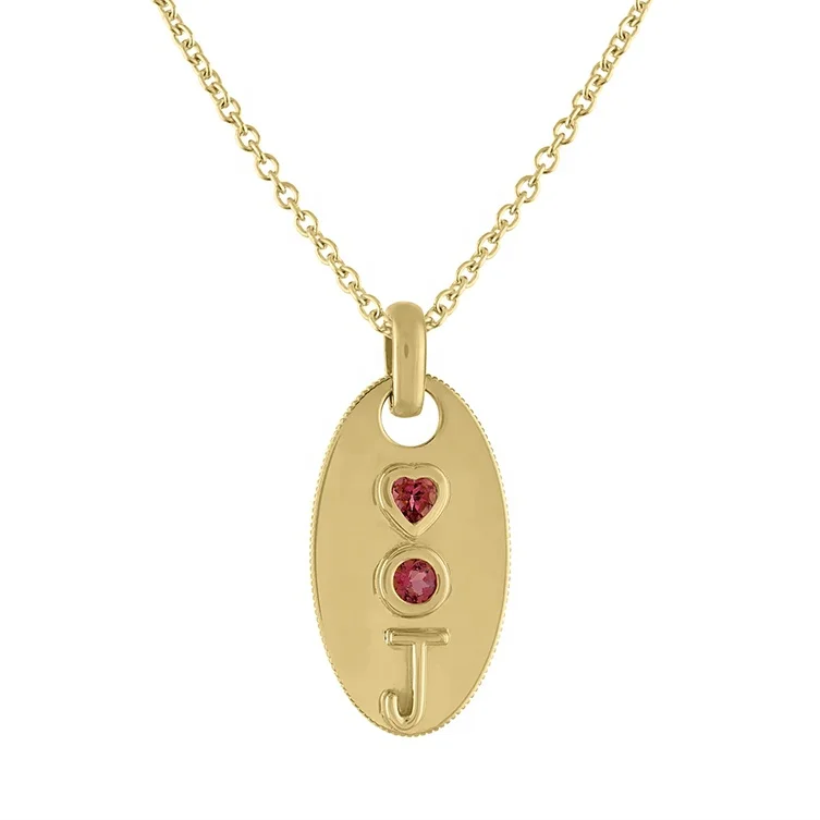 14K/18K Gold Plated Vermeil 925 Sterling Silver Fine Jewelry Zircon Gemstone Oval Initial Dog Tag Pendant Necklace