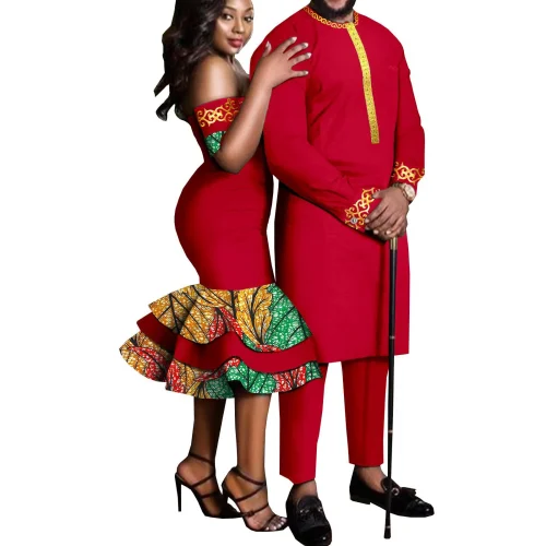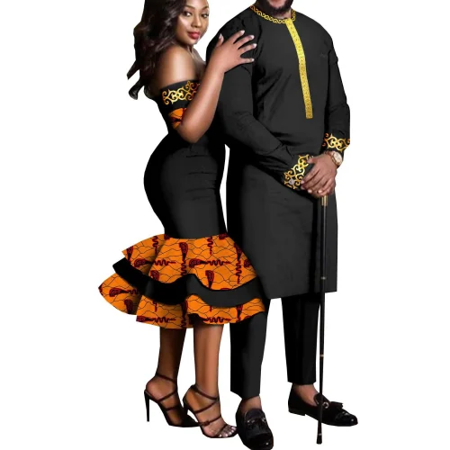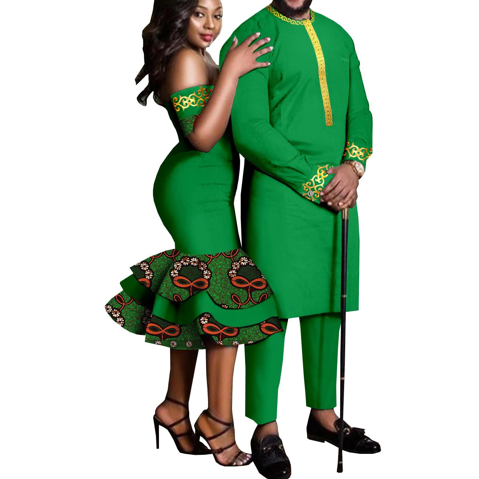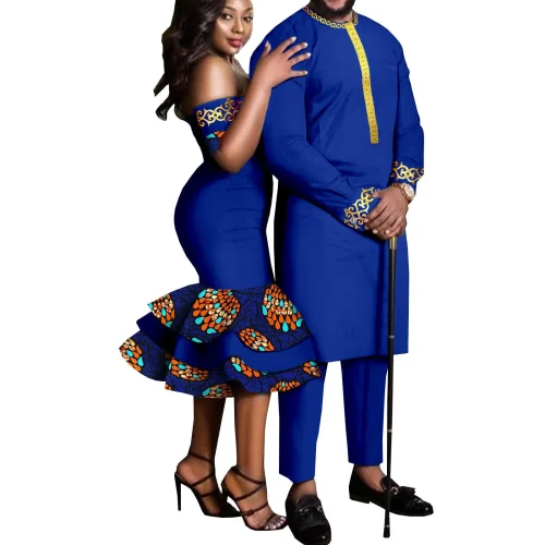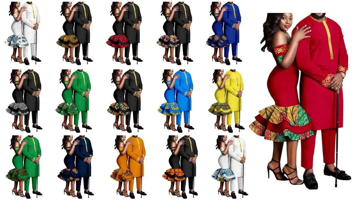 16 Styles African Style Cotton Wax Fabric Plus Size Men and Women Couples Outfits Evening Party Dress