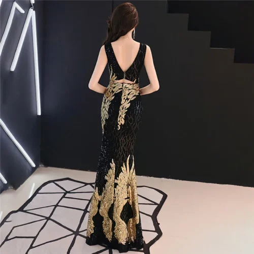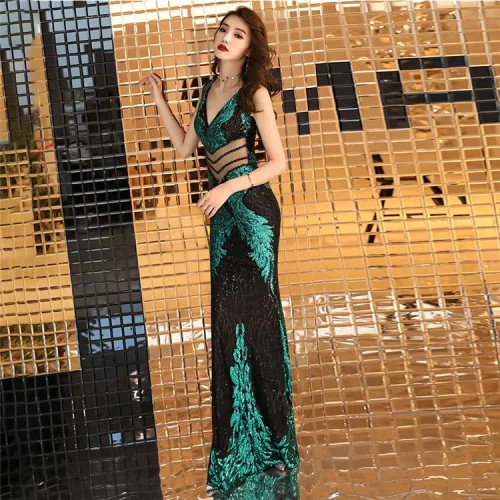 Product Name: 16067#Evening Dress Dinner Party Deep V Sexy Woman Evening Prom Bridesmaid Dress Long Formal Grown Luxurious Gown Women Sequin