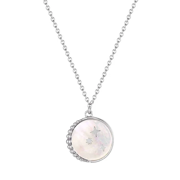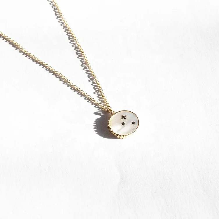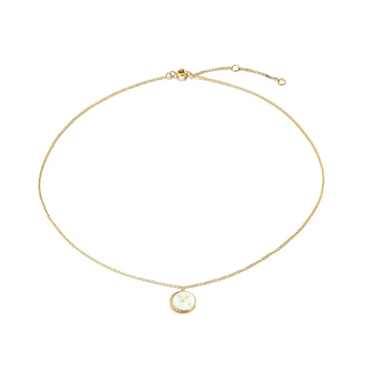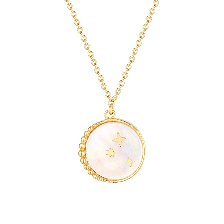 18k Gold 925 Sterling Silver Mother of Pearl Vermeil Coin Necklace Pendants for Women