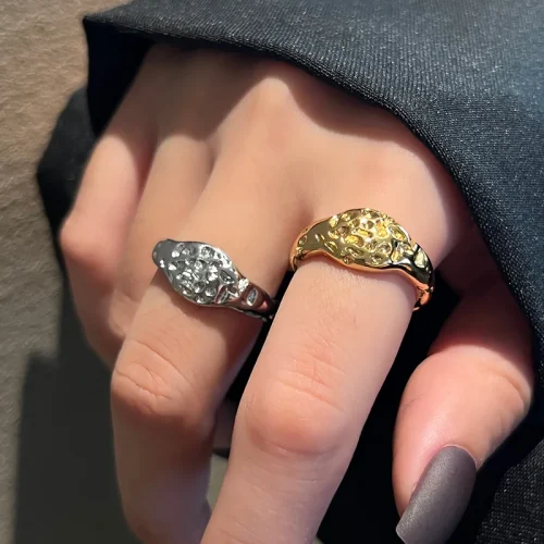 Product Name: 18K Gold Jewelry Ring for Girls Fashionable Bump Irregular Design with Adjustable Temperament for Engagement Alloy Material